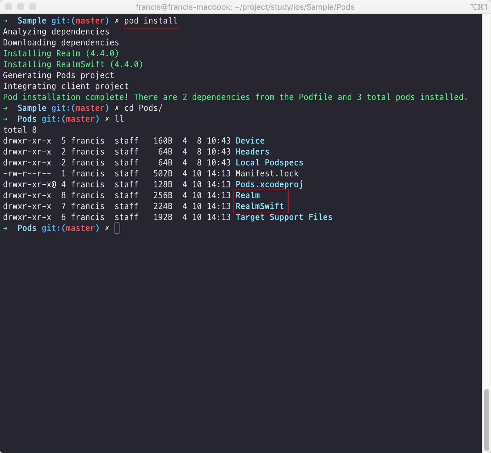 pod instal 명령을 실행하여 설치를 진행합니다.