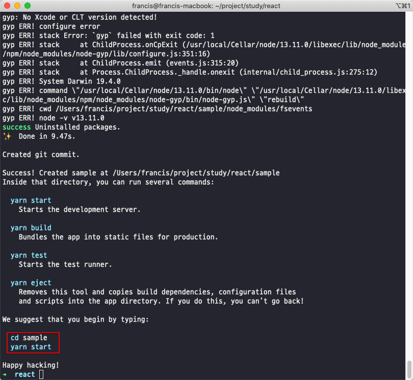 일단 다음과 같이 create-react-app을 이용하여 프로젝트를 생성합니다.